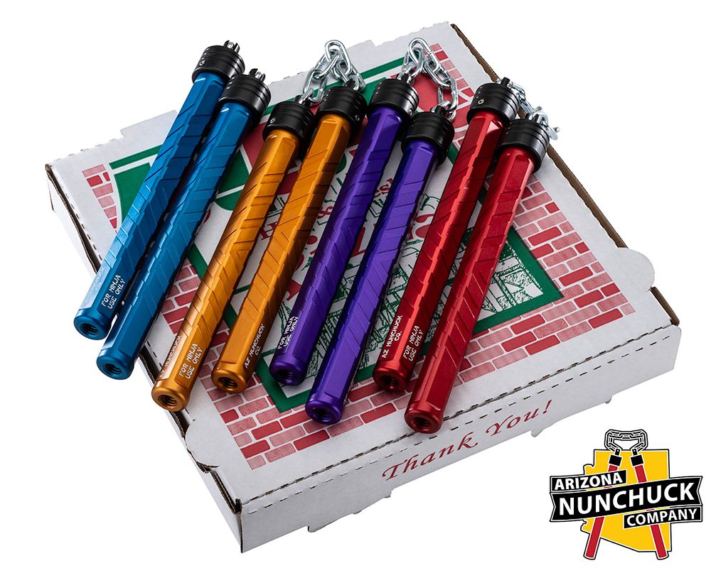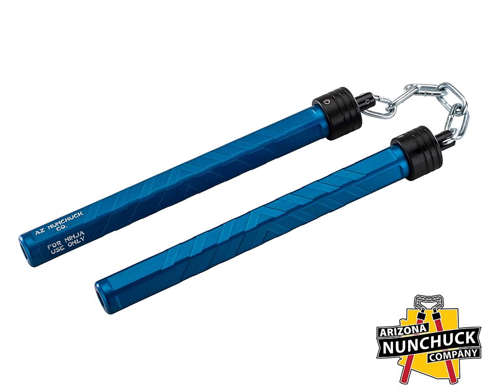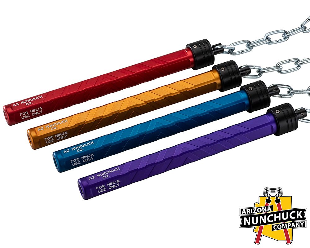 The Arizona Nunchuck Company 9” Nunchuck Set is a CNC-machined aluminum training and display tool built for durability and consistent handling. This set solves the problem of poorly balanced or fragile nunchucks that fail under repetitive use. Each handle is precision-machined from aluminum, anodized, and assembled with steel chain studs and ball bearings for smooth articulation and extended service life. The 6” chain and 21.25oz total weight provide a balanced swing profile suitable for practice, choreography, or prop use.