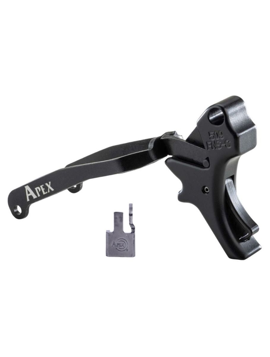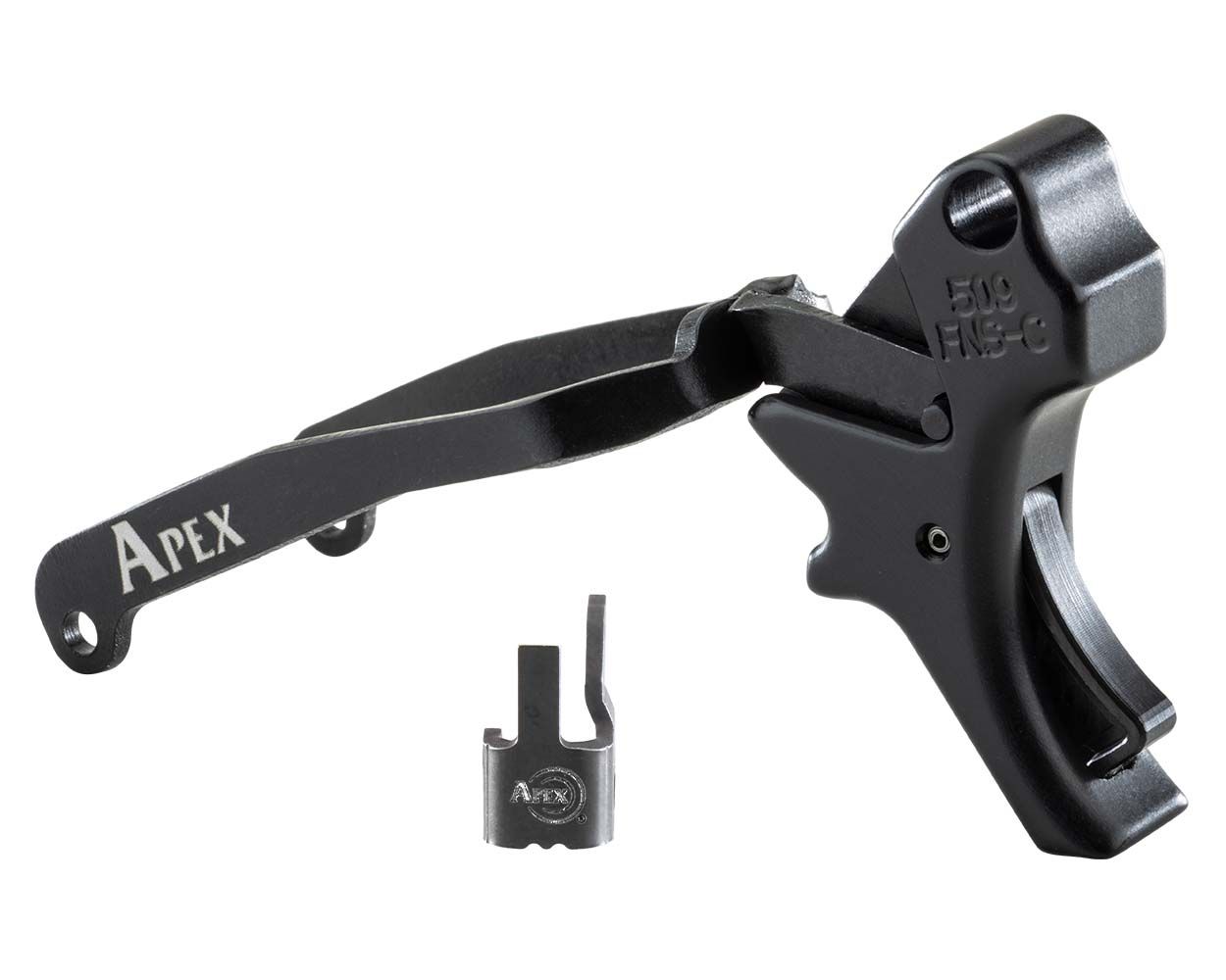 Direct drop-in trigger kit for the FN 509. Reduces pull weight to approximately 5.5 lbs, shortens pre-travel, over-travel, and reset distance, and delivers a crisp break. The patent-pending design uses a center-mounted pivoting safety that maintains factory safety values. No fitting required.