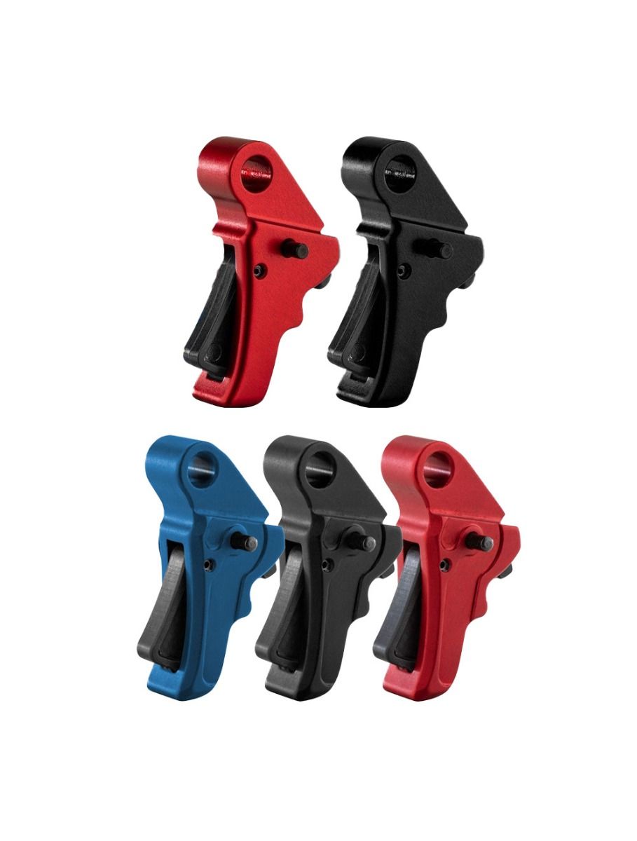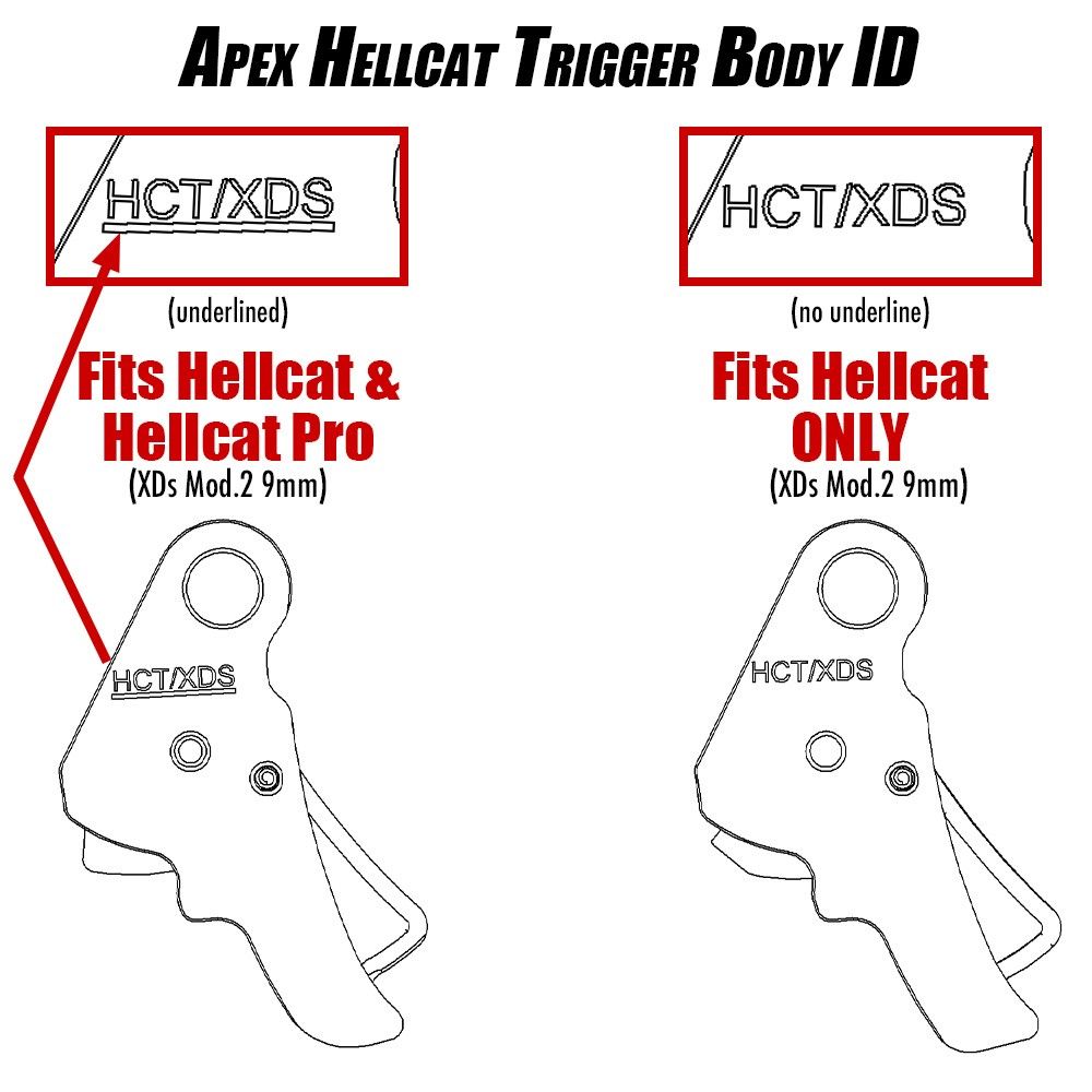 This drop-in trigger assembly directly replaces the factory Hellcat trigger unit. It reduces pull weight to 5.0–5.5 lbs after a 200–300 round break-in period, shortens overall travel and reset, and delivers a crisp break. All factory safety values (striker block, trigger safety, sear engagement) are retained. Available in two visual styles: the classic trigger (radiused front corners) or the Type 3 trigger (chamfered front corners with decorative side cuts). Performance is identical between both versions.