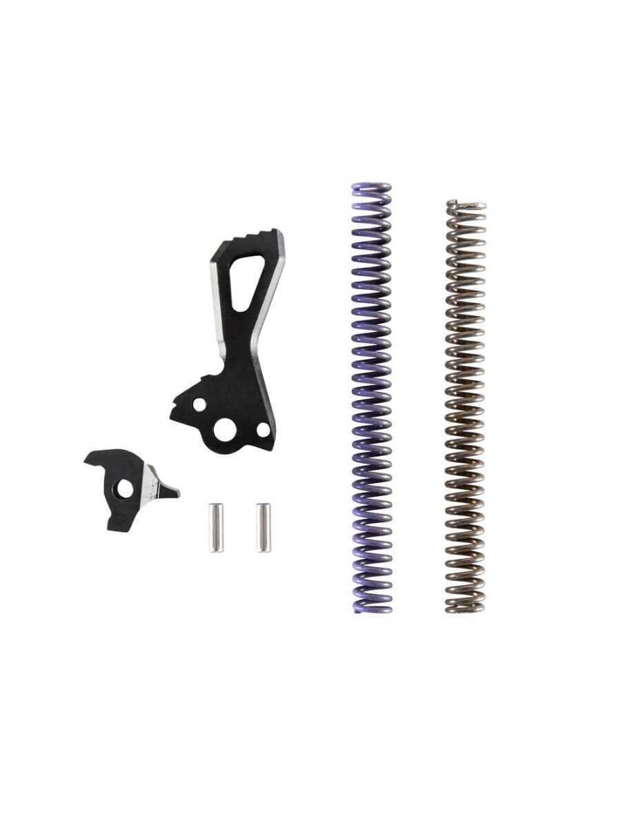 This drop-in hammer and sear set replaces the factory components in CZ Shadow-series pistols to reduce trigger weight and eliminate stacking in the double-action stroke. The matched engagement surfaces are cut to produce a clean single-action break without creep, while the double-action pull becomes smooth and linear. No polishing or stoning of the sear or hammer faces is required — the geometry is finished from the manufacturer.