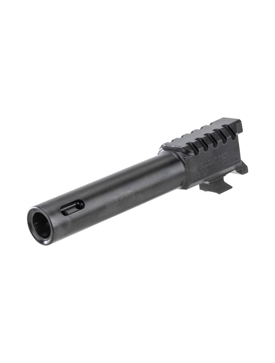 This is a direct drop-in replacement barrel for the Springfield Hellcat Pro, available in both ported and threaded configurations. The ported version reduces muzzle rise and felt recoil by venting high-pressure gas through strategically placed holes in the bore. The threaded version extends the barrel by .625″ with 1/2-28 threads for standard muzzle attachments. Both options solve the factory barrel’s limitations for shooters needing tighter accuracy or accessory mounting capability.