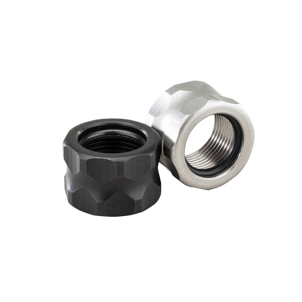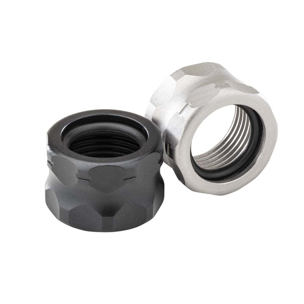 Threaded barrel threads left exposed are vulnerable to dings, dirt, and cross-threading during handling or holster wear. This Apex Grade Thread Protector screws onto the muzzle end of your 9mm, .40 S&W, or .45 ACP threaded barrel to shield the threads from impact and debris. A captured O-ring is pre-installed and stays seated inside the protector when removed — no loose gaskets to lose or fumble during cleaning. The unique Offset Pentagon Pattern gives a clean, non-round profile that stands out from standard thread protectors.