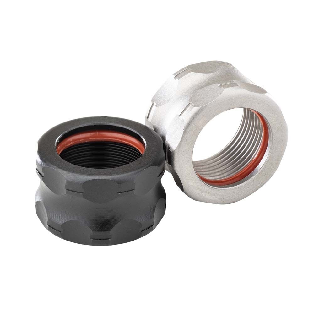 Level 1/5 — Hand-tighten onto clean, dry threads. No tools required. Do not over-torque; the O-ring provides retention. If suppressor mounting, remove protector first.