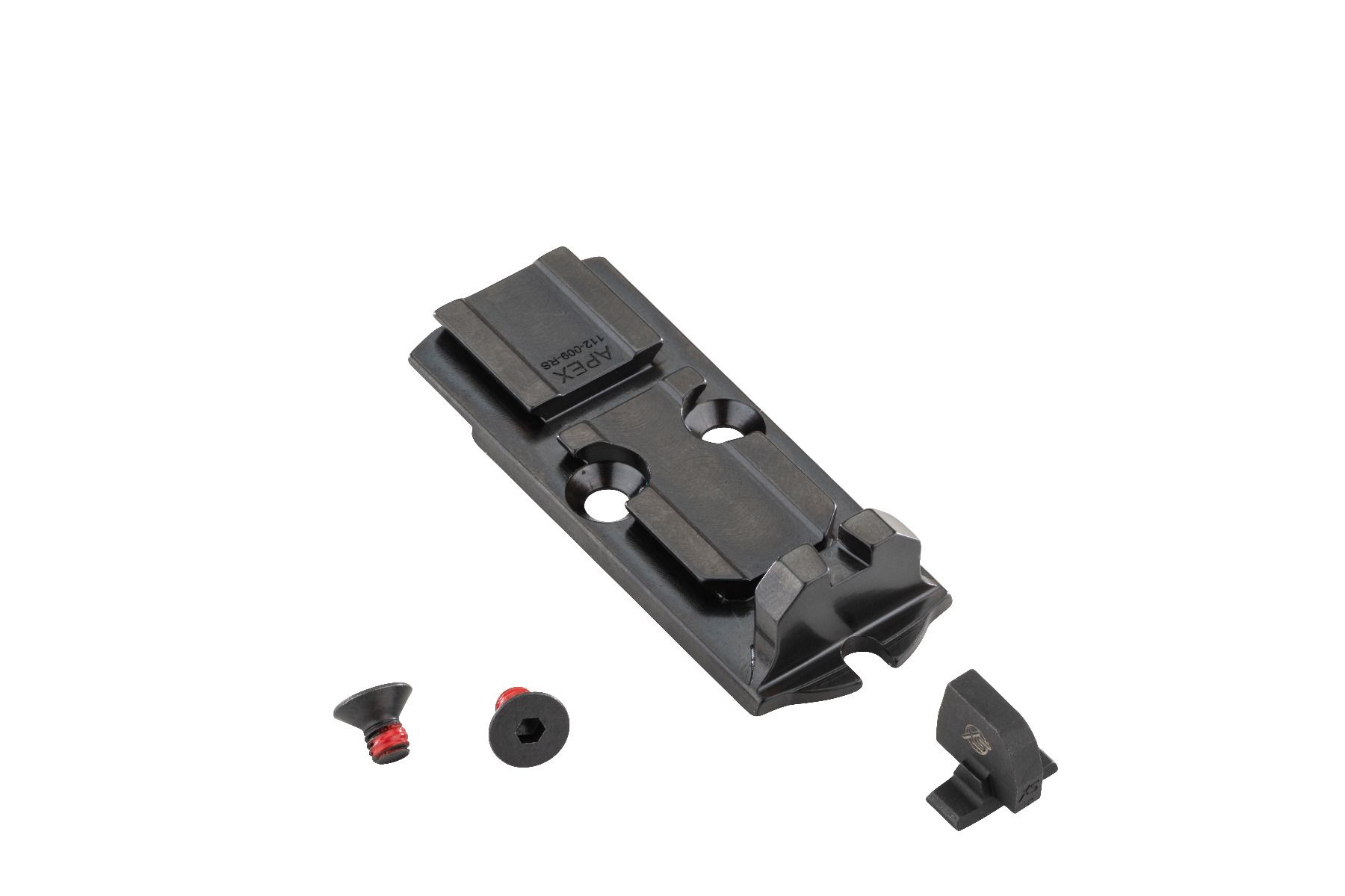 Drop-in fit. Requires removal of factory optic plate (Torx T10 or T15), application of thread locker (not included), and torque wrench set to 15 in-lbs. If installing the integrated rear sight version, verify front sight height per barrel length. No slide milling or fitting required.