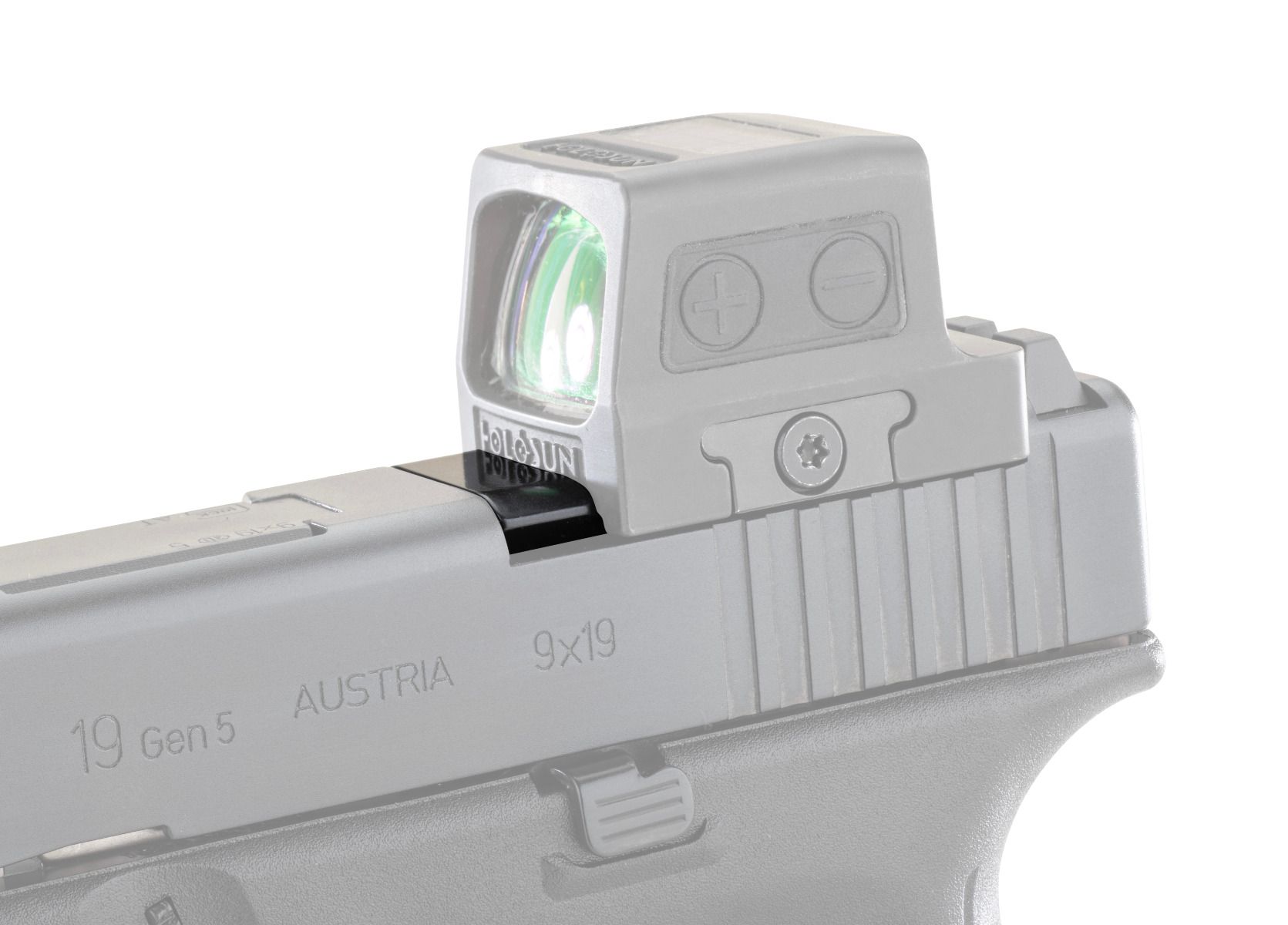 - Glock MOS slides (G17 Gen5 MOS, G19 Gen5 MOS, G45 MOS, G34 Gen5 MOS, G41 MOS, and all other factory MOS-cut slides)