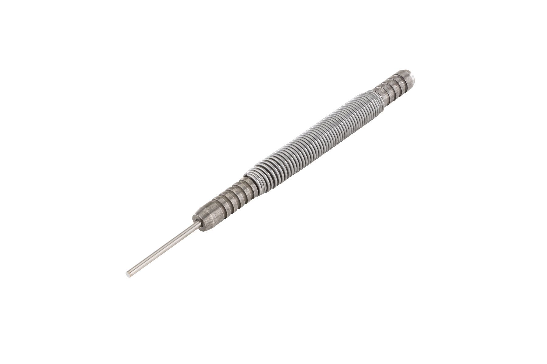 This 3/32″ Disassembly Punch is a spring-loaded pin punch modified with a flat tip for targeted removal of the Front Locking Block Pin on FN 509, FN 510, and FN 545 pistols. The factory pin fit is tight, and standard punches often slip or mar the frame. This tool applies direct axial force to the pin face, releasing it with a few strikes rather than repeated hammering. Designed for use with the corresponding Apex Disassembly Fixture (sold separately) for proper frame alignment and pin access.