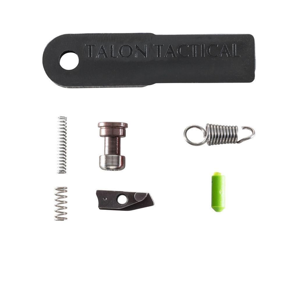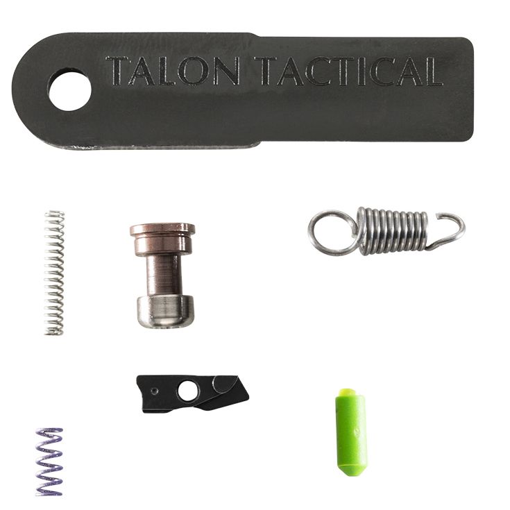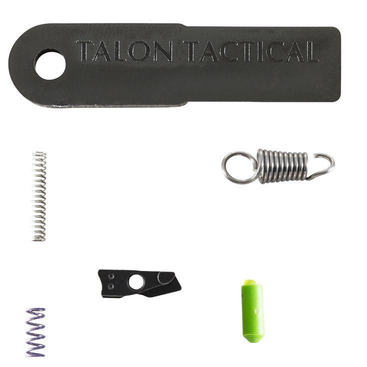 A drop-in duty/carry kit for M&P Shield, Shield 45, and Shield 2.0 pistols. Designed to improve trigger feel without replacing the factory trigger shoe. Reduces pull weight by approximately 2 lbs, shortens reset distance, and minimizes over-travel. The kit uses direct replacement parts — no fitting required.