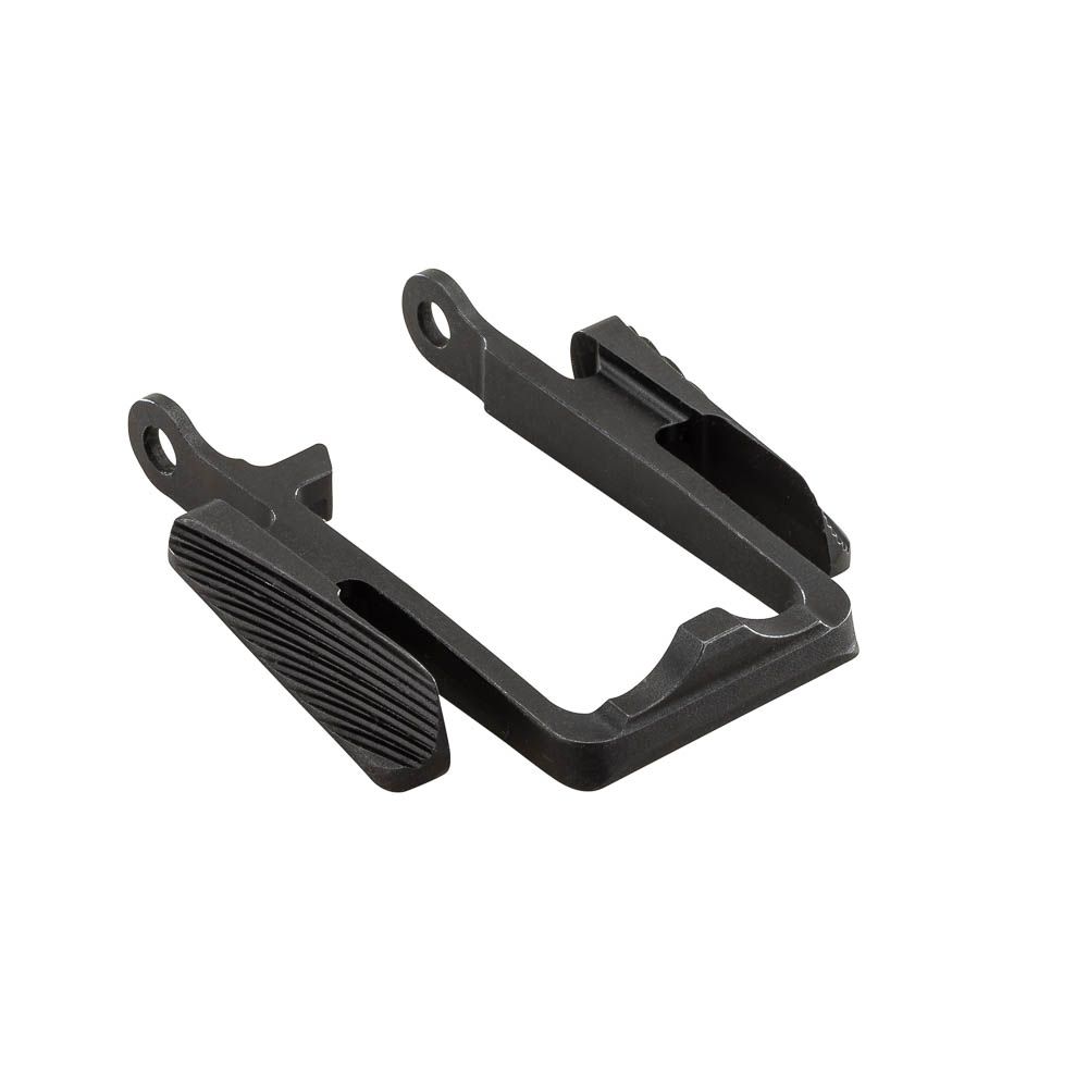 - Paddle extends 0.15″ rearward vs. factory lever; width increased 0.08″ for positive thumb purchase
