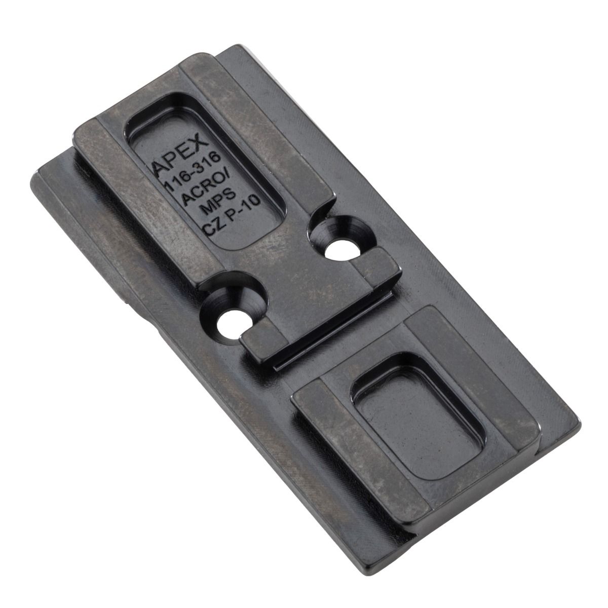The Apex Optic Mount is designed to securely mount the following Optics to the CZ P-10. The Apex Optic Mount is machined from a billet of steel and is manufactured by Apex in the Free State of Arizona.