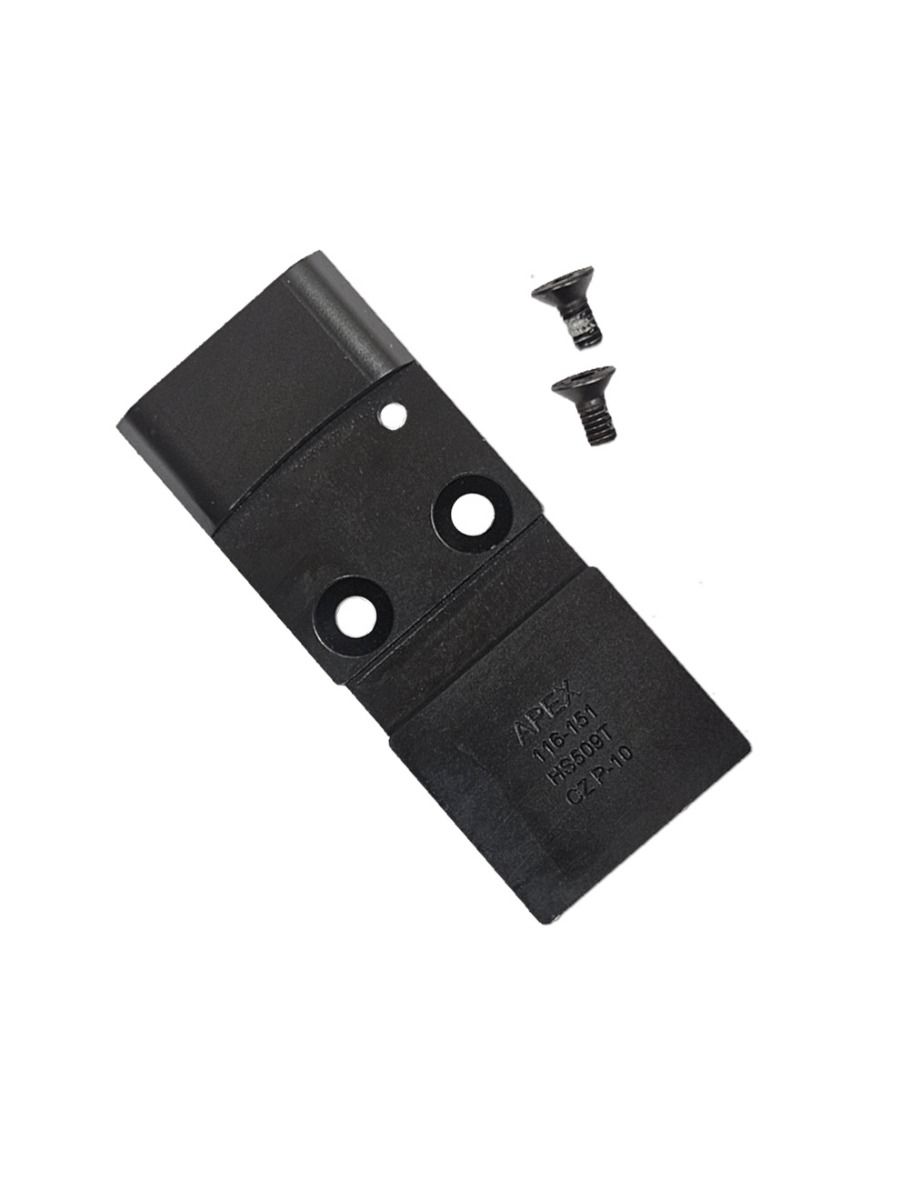 The Apex Optic Mount is designed to securely mount the Holosun 509T to the CZ P-10 Optic mounting system. The Apex Optic Mount is machined from a billet of steel and black oxide finished for enhanced durability and is manufactured by Apex in the Free State of Arizona.